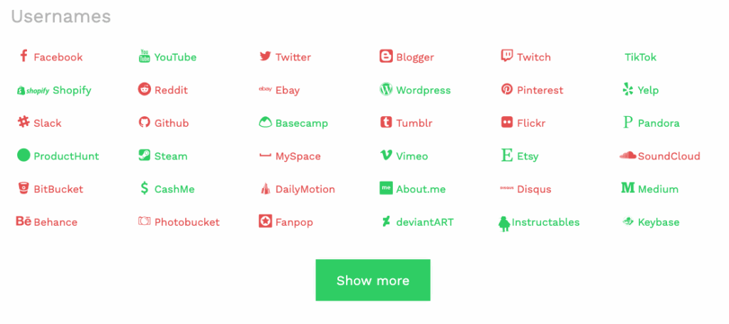 It will reveal platforms, where this username is used. When considering social media, people often re-use usernames across platforms, allowing data collection. However, some platforms have my username already locked by another user, so false-positives occur as well. you can also search for eMail adresses, which is much more accurate and cannot be re-used by other platforms: